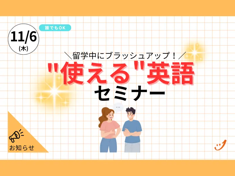 【もう一歩先の英語力】11/6㈭ 留学中にブラッシュアップ!”使える”英語セミナー【伝わる会話】