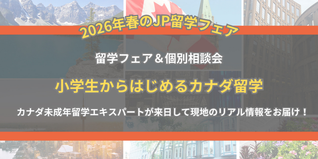 2025年の「未成年留学」まとめ 留学スタート年齢の若年化 ここ数年、お子様のカナダ留学をご検討になる保護者様からJP留学へのお問い合わせが後を絶たちません。ご相談内容は、お子様の将来の進学まで見据えた親子留学、中学・高 […] -