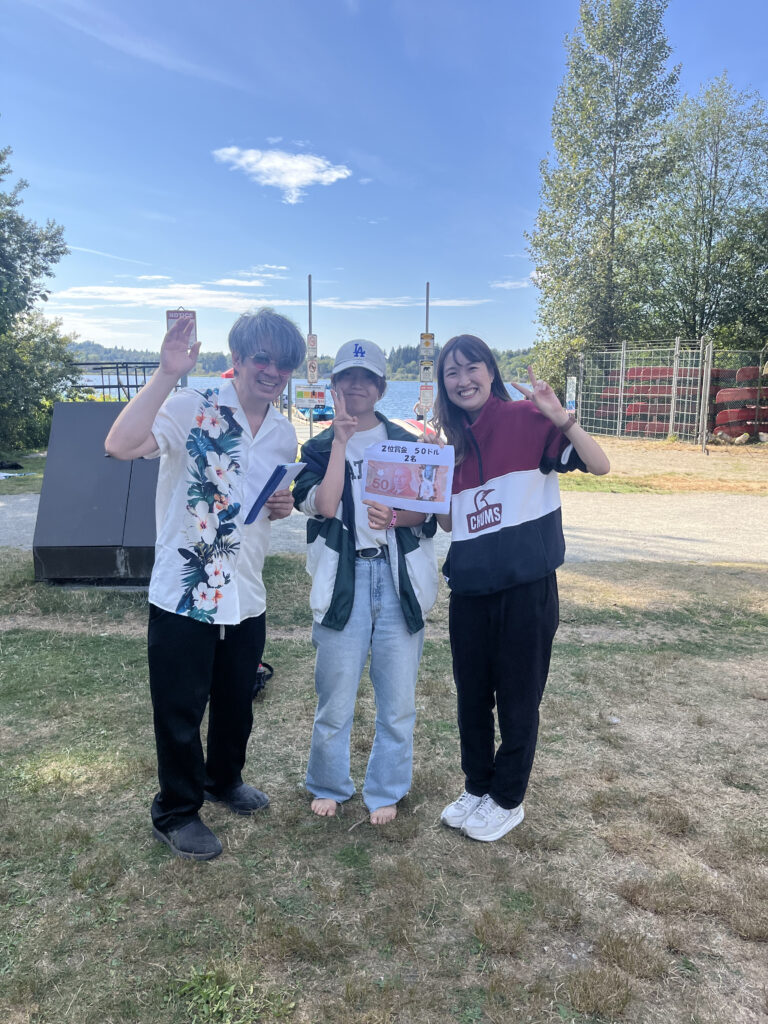 カヤックで自然を満喫し、おいしいBBQでおなかがいっぱいになった後は、JPカナダ社長恒例のゲーム大会です。優勝者はなんと賞金100ドル!