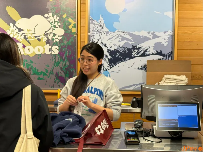 日本で4年間の社会人経験を積んだのち、バンクーバーへ渡航したSayumiさんは、カナダ発祥の大人気アパレルブランド「Roots」で、働いています。